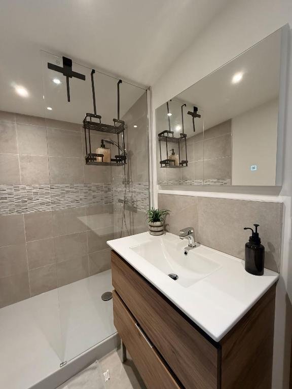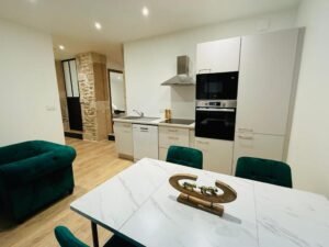 La cuisine full équipée vous permettra de profiter pleinement de votre séjour : réfrigérateur, plaque de cuisson, micro-ondes, lave-vaisselle, ainsi qu’une machine à laver avec fonction sèche-linge. Tout le nécessaire est réuni pour un séjour confortable, court ou longue durée.